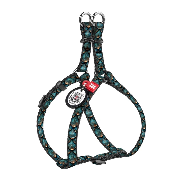 Шлей для котів та дрібних порід собак WAUDOG Nylon з QR адресником, малюнок "Луска", пластиковий фастекс, XS, Ш 10 мм, A=B 3