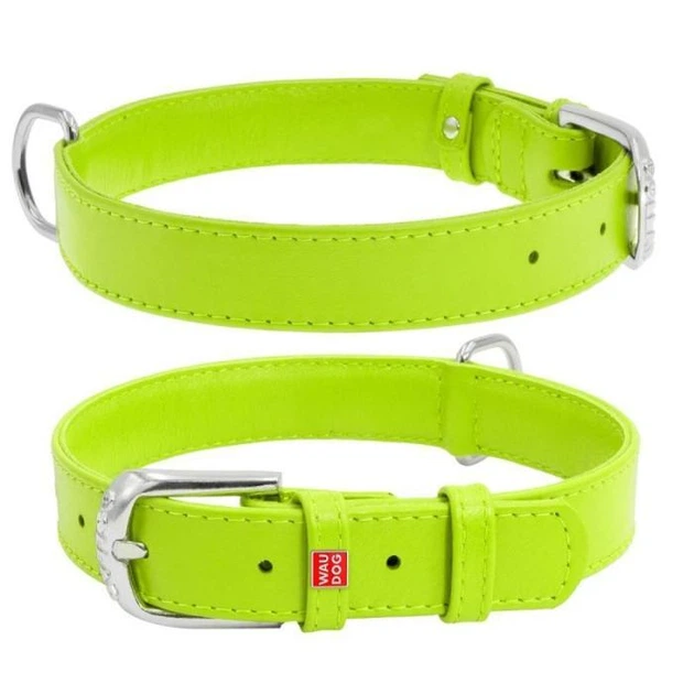 Нашийник для собак шкіряний WAUDOG Glamour з QR паспортом, без прикрас, Ш 15 мм, Дов 27-36 см салатовий