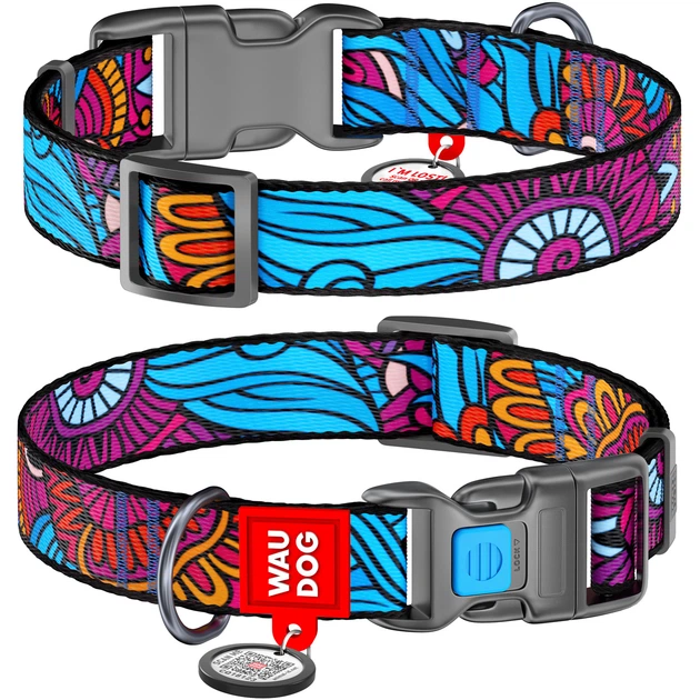 Нашийник для собак нейлоновий WAUDOG Nylon з QR паспортом, малюнок "Графіті" 37-58 см 25 мм (4735)