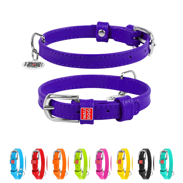 Ошейник для собак шкіряний WAUDOG Glamour з QR паспортом, без прикрас, S, Ш 15 мм, Дов 27-36 см фіолетовий