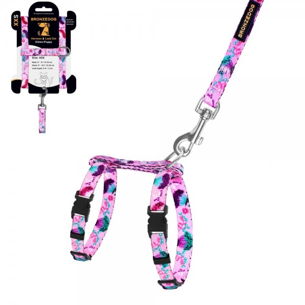 Нашийники, повідки, шлеї Bronzedog Urban Шлея з повідцем для собак дрібних порід та котів "Квіти", рожева 2XS (57/1407Б/Т)