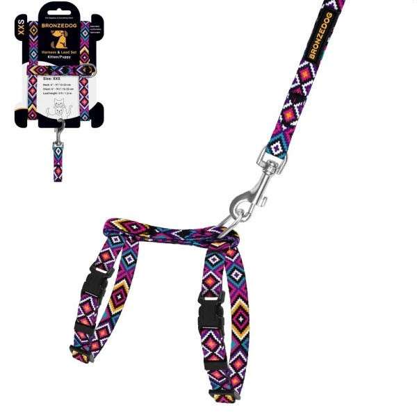 Нашийники, повідки, шлеї Bronzedog Urban Шлея з повідцем для собак дрібних порід та котів "Інки" 2XS (57/1336Б/Т)