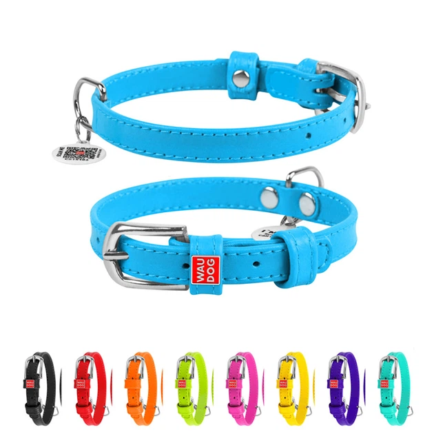 Нашийник для собак шкіряний WAUDOG Glamour з QR паспортом, без прикрас, S, Ш 15 мм, Дов 27-36 см блакитний