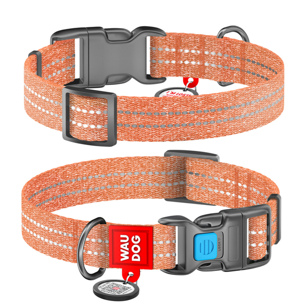 Нашийник для собак з відновленої бавовни WAUDOG Re-cotton з QR паспортом, світловідбивний, пластиковий фастекс, Ш 25 мм, Дл