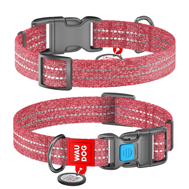 Нашийник для собак WAUDOG Re-cotton червоний, світловідбивний, регульований XL, ширина 25 мм, довжина 37–58 см, пластиковий