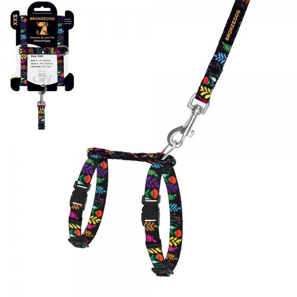 Нашийники, повідки, шлеї Bronzedog Urban Шлея з повідцем для собак дрібних порід та котів "Квіти", чорна XS (58/1401Б/Т)