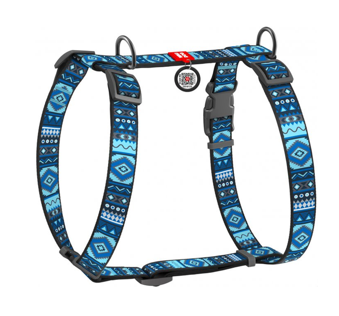 Шлей для собак анатомічний з QR-паспортом Етно об'єм живота 30-50см шия 30-40 см ширина -15мм синій