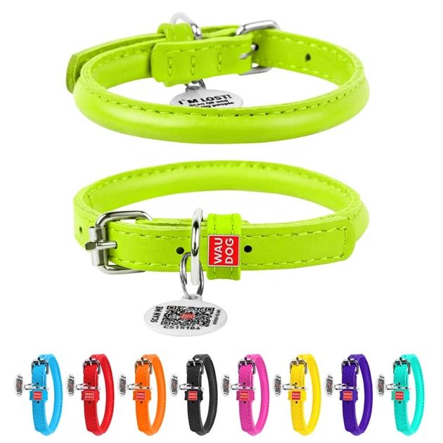 Ошейник для собак шкіряний WAUDOG Glamour з QR паспортом, круглий, Д 8 мм, Дов 20-25 см салатовий