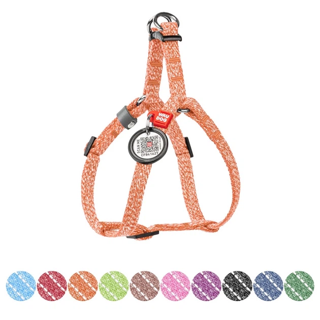 Шлей для котів та дрібних порід собак з відновлення бавовни WAUDOG Re-cotton з QR паспортом, світловідбиваюча, пластиковий ф
