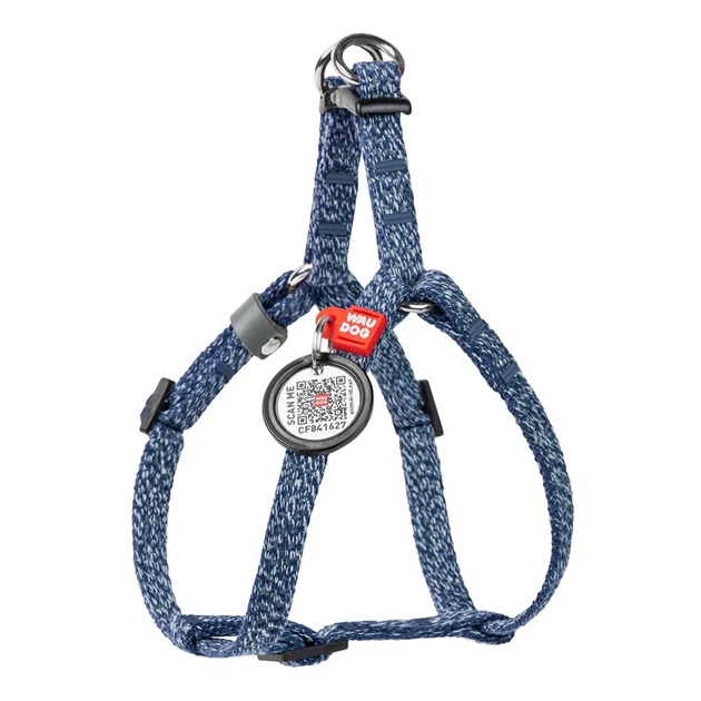 Шлей для котів та дрібних порід собак з відновлення бавовни WAUDOG Re-cotton з QR паспортом, світловідбиваюча, пластиковий ф