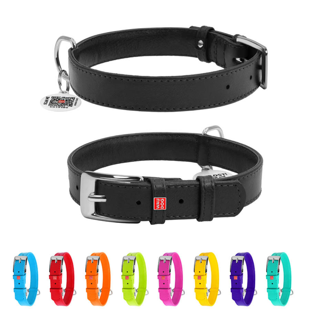 Нашийник для собак шкіряний WAUDOG Glamour з QR паспортом, без прикрас, M, Ш 20 мм, Дов 30-39 см чорний