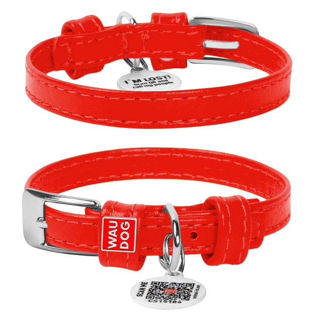 Нашийник для собак шкіряний WAUDOG Glamour з QR паспортом, без прикрас, Ш 20 мм, Дов 30-39 см червоний