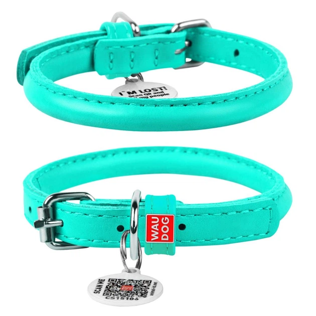 Нашийник для собак шкіряний WAUDOG Glamour з QR паспортом, круглий, Д 8 мм, Дов 25-33 см ментоловий