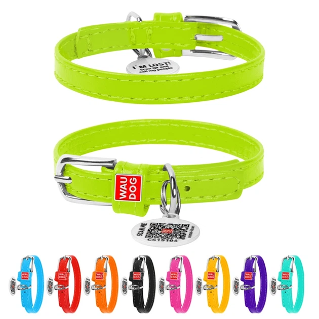 Ошейник для собак шкіряний WAUDOG Glamour з QR паспортом, без прикрас, XXS, Ш 9 мм, Дов 19-25 см салатовий