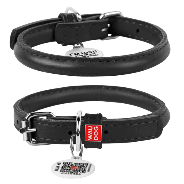 Нашийник для собак шкіряний WAUDOG Glamour з QR паспортом, круглий, Д 8 мм, Дов 25-33 см чорний