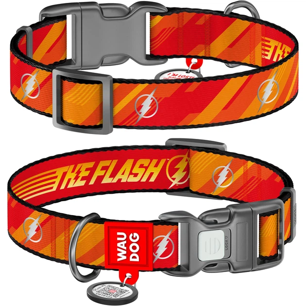 Нашийник для собак нейлоновий WAUDOG Nylon з QR паспортом, світловідбивний, малюнок "Флеш Лого", пластиковий