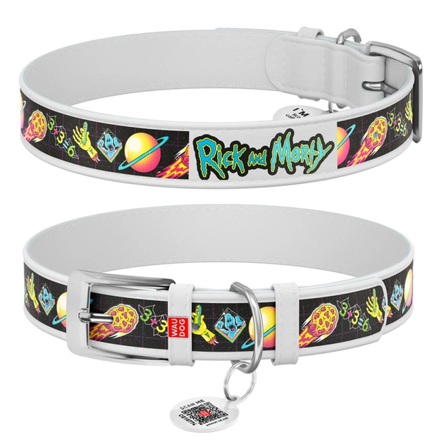 Нашийник для собак шкіряний WAUDOG Design з QR паспортом, малюнок “Рік та Морті 3” білий 19-25см