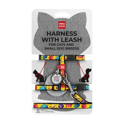 Шлея з повідцем для котів та дрібних порід собак WAUDOG Nylon з QR паспортом, малюнок "Мохнаті монстри"