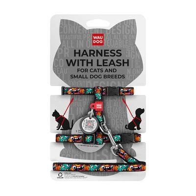 Шлея з повідцем для котів WAUDOG Nylon з QR паспортом, малюнок "Інді", пластиковий фастекс, Ш 10 мм, В 25-40 см, С 20-30 см