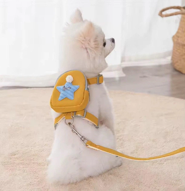 Шлейка з повідцем для маленьких собак та котів з рюкзаком Жовта