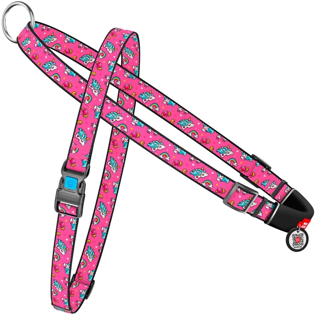 Нейлонова шлейка з ручкою для собак WAUDOG Nylon з QR паспортом, з малюнком "Єдинороги", розмір S (5466)