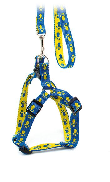 Шлейка та поводок капроновая Лапки ширина шлейки 1.6 см, обхват грудей 39-52см, шиї 29-42см, довжина повідця 120 см синя