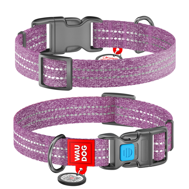 Ошейник для собак із відновленого бавовни WAUDOG Re-cotton з QR паспортом, світловідбиваючий, пластиковий фастекс, Ш 25 мм,