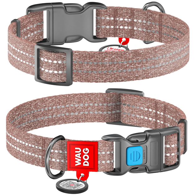 Нашийник для собак WAUDOG Re-cotton з QR паспортом, з відновленої бавовни, пластикова пряжка 37-58 см 25 мм Коричневий (0294