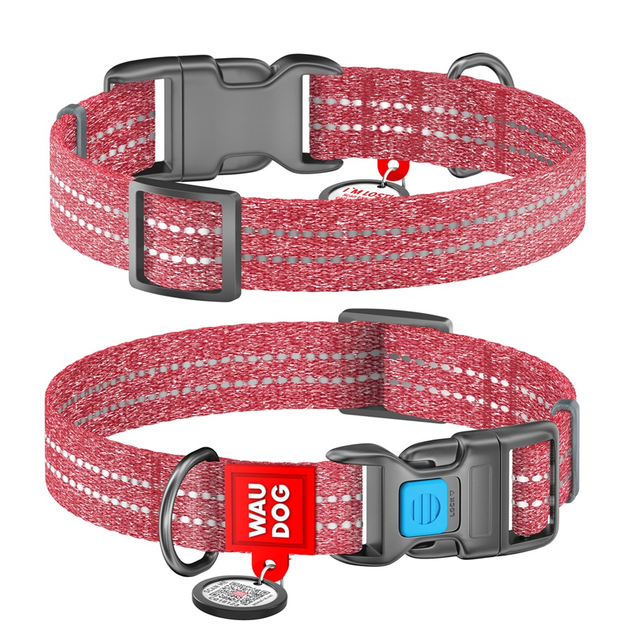 Нашийник для собак WAUDOG Re-cotton червоний, світловідбивний, регульований XL, ширина 25 мм, довжина 37–58 см, пластиковий