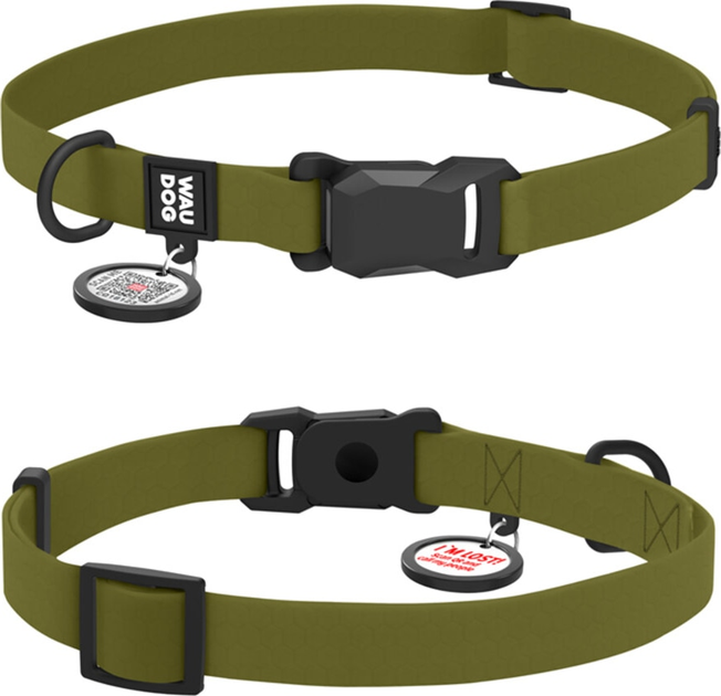 Нашийник для собак водостійкий WAUDOG Magnet з QR паспортом, магнітна пряжка-фастекс, S, Ширина 15 мм, Довжина 26-35 см Хакі
