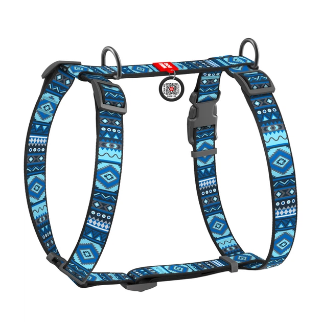 Шлей для собак анатомічний H-подібний WAUDOG Nylon з QR-паспортом, малюнок "Етно синій", пластиковий фастекс, S, Ш 15 мм, A