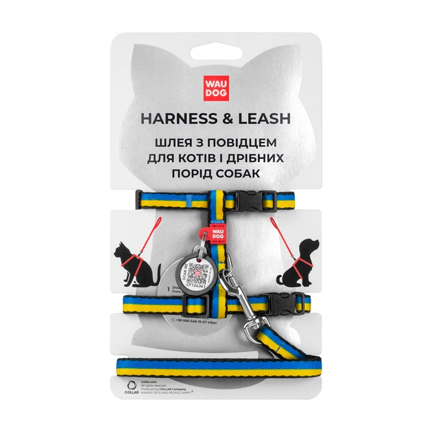Шлея з повідцем для котів WAUDOG Nylon з QR паспортом малюнок "Colors of freedom" пластиковий фастекс XS Ш 10 мм В 25-40 см