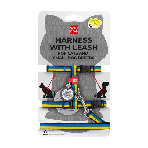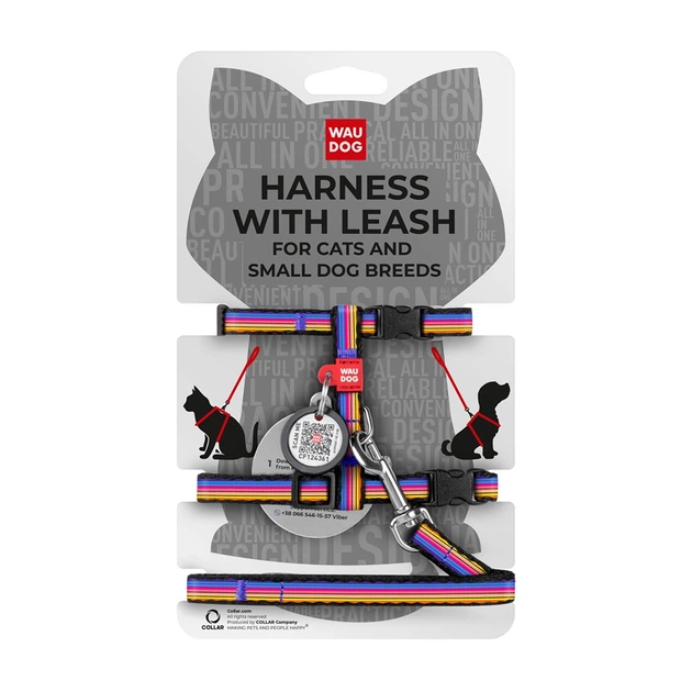 Шлея з повідцем для котів WAUDOG Nylon з QR паспортом, малюнок "Colors of freedom", пластиковий фастекс, XS, Ш 10 мм, В 25-4
