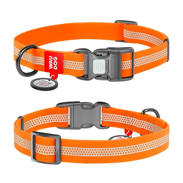 Нашийник для собак водостійкий WAUDOG Waterproof M, помаранчевий, світловідбивний, з QR-паспортом, пластикова пряжка, ширина