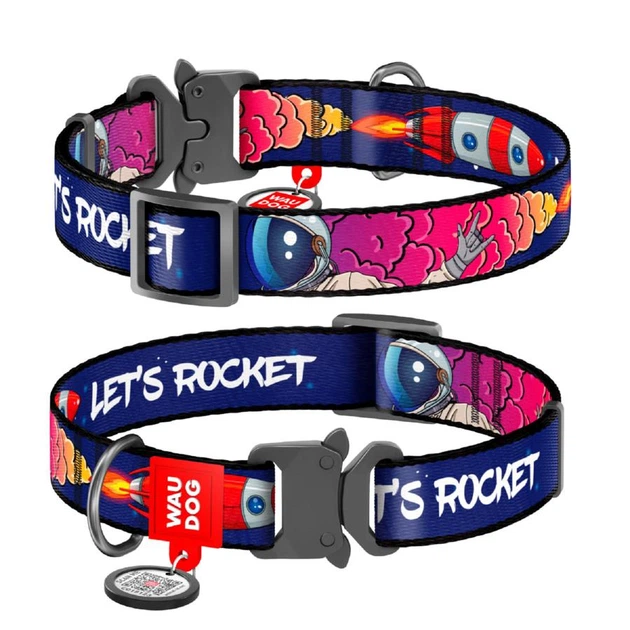 Ошейник для собак нейлоновий WAUDOG Nylon з QR-паспортом малюнок "Космос. Ракета" Розмір L
