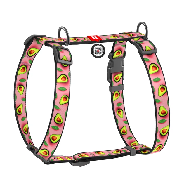 Шлей для собак анатомічний H-подібний WAUDOG Nylon з QR-паспортом малюнок "Авокадо на рожевому" пластиковий фастекс S Ш 15 м