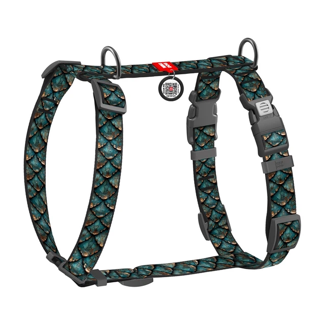 Шлей для собак анатомічний H-подібний WAUDOG Nylon з QR адресником, малюнок "Луска", пластиковий фастекс, S, Ш 15 мм, A 30-4