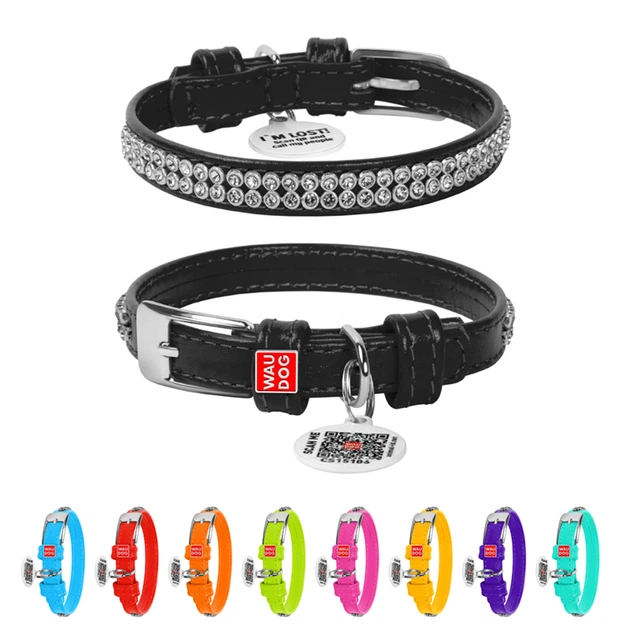 Нашийник для собак шкіряний WAUDOG Glamour з QR паспортом, з клейовими стразами, XS, Ш 9 мм, Дл 18-21 см (4820082498832)