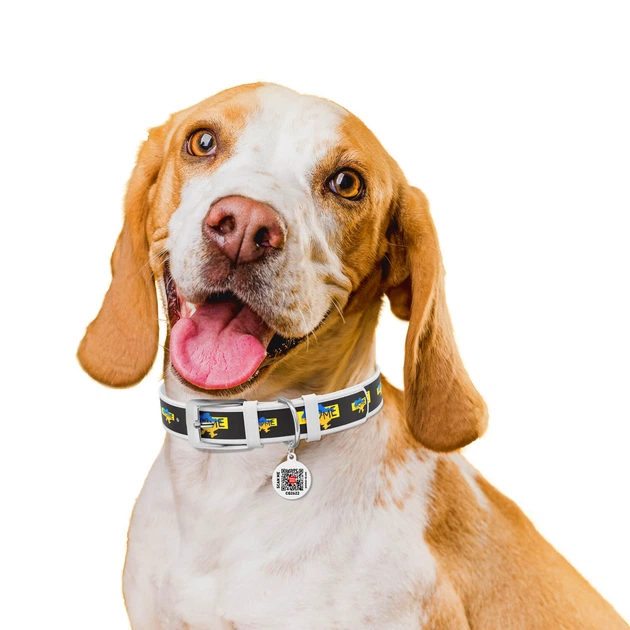 Нашийник для собак шкіряний WAUDOG Design з QR паспортом, малюнок "Прапор" Чорний 26-35 см 15 мм (3603-0229-01)