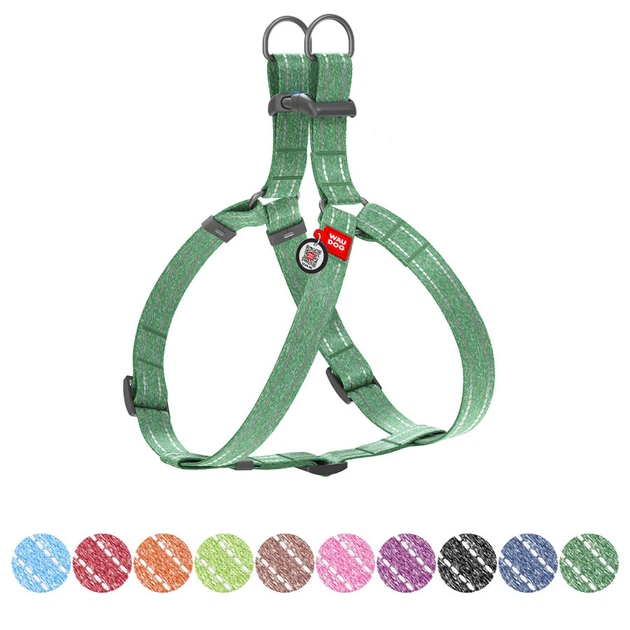 Шлей з відновленої бавовни WAUDOG Re-cotton з QR паспортом, світловідбивна, пластиковий фастекс, S, Ш 15 мм, Дл 40-55 см, зе