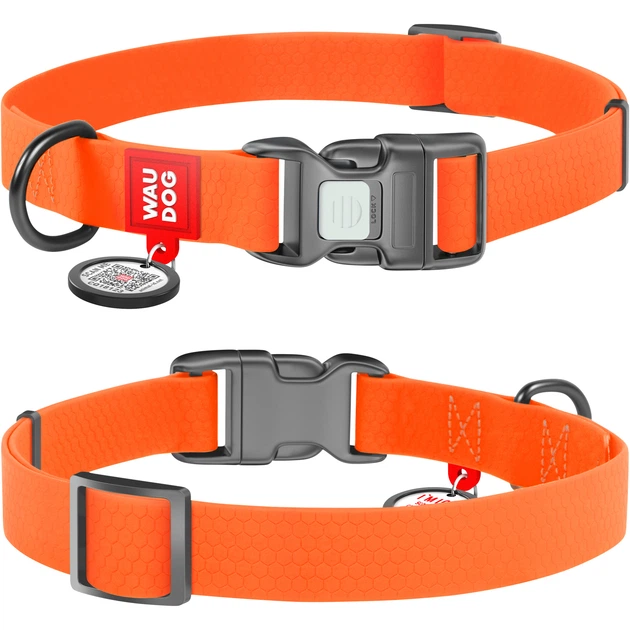 Нашийник для собак водостійкий WAUDOG Waterproof з QR-паспортом, пластикова пряжка-фастекс, Ш 25 мм, Дл 31-49 см, оранжевий