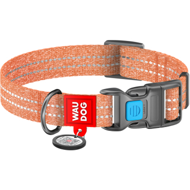 Нашийник для тварин WAUDOG Re-cotton з QR паспортом світловідбивний Ш 15 мм Д 25-35 см помаранчевий (02864)