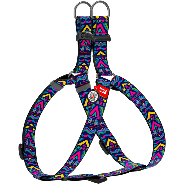 Нейлонова шлея для собак WAUDOG Nylon з QR паспортом, з малюнком "Інді" 40-55 см 15 мм (4963)