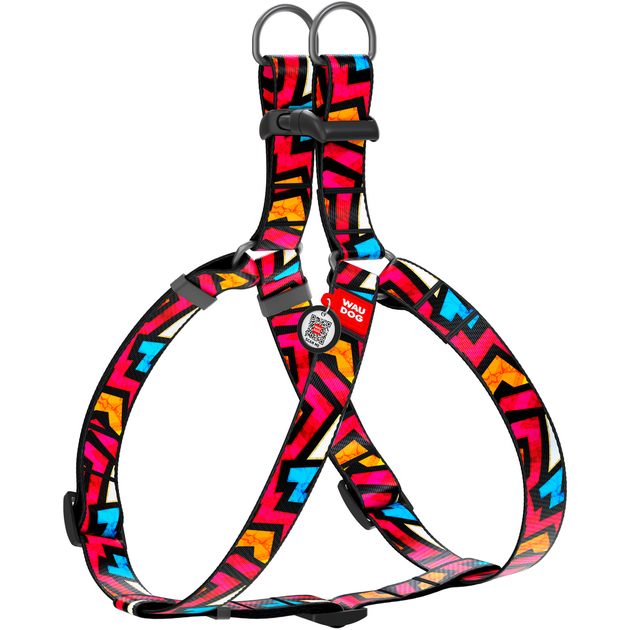 Нейлонова шлея для собак WAUDOG Nylon з QR паспортом, з малюнком "Графіті" 40-55 см 15 мм (5013)