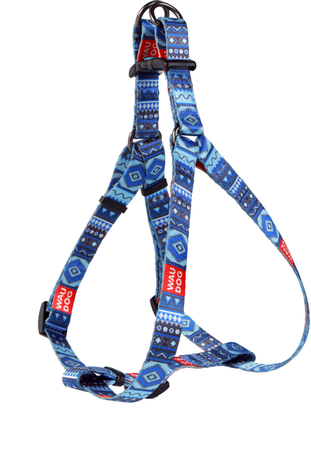 Шлея для собак анатомічна Collar WAUDOG Nylon з QR паспортом, малюнок "Етно синій", пластиковий фастекс, M, Ш 20 мм, Дов 50-