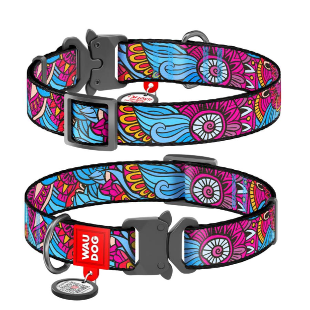 Нашийник для собак нейлоновий WAUDOG Nylon з QR паспортом, малюнок "Графіті", металева пряжка-фастекс, M,