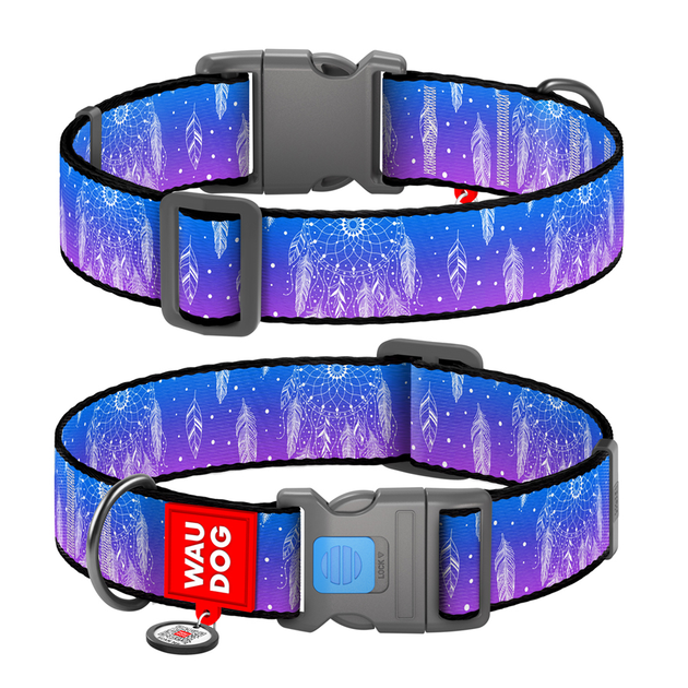 Нашийник для собак WAUDOG нейлоновий Nylon c QR паспортом, малюнок Ловець снів, пластиковий фастекс, XXL, Ш 35 мм, Д 46-70 с
