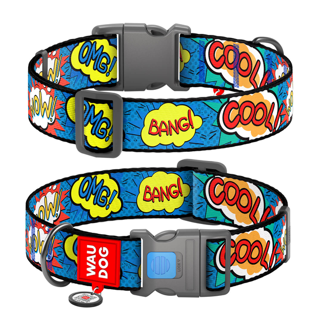 Нашийник для собак нейлоновий WAUDOG Nylon з QR паспортом, малюнок "ВАУ", пластиковий фастекс 46-70 см 35 мм (284-0087)