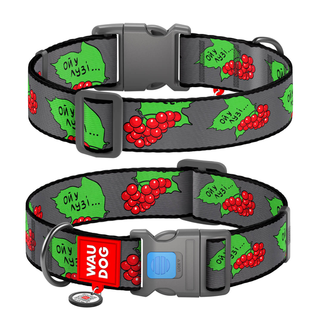 Нашийник для собак нейлоновий WAUDOG Nylon з QR паспортом, малюнок "Калина", пластиковий фастекс 46-70 см 35 мм (284-0228)