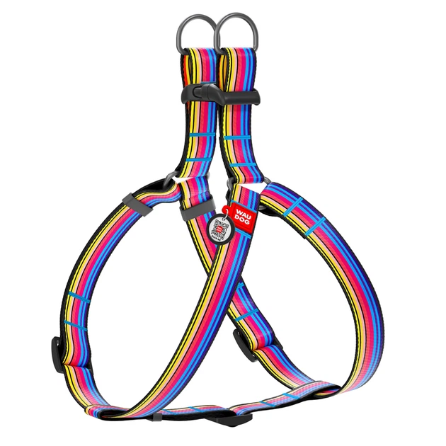 Нейлонова шлея з ручкою для собак WAUDOG Nylon з QR паспортом, з малюнком "Вітраж", розмір M (5439)